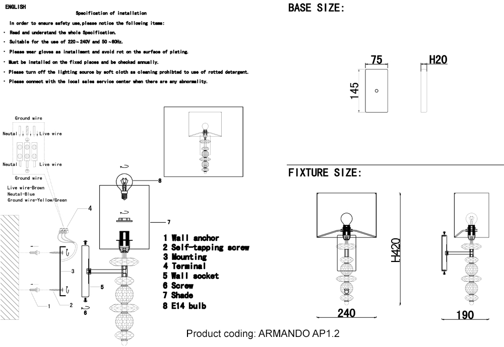 Бра ARMANDO AP1.2 CHROME имеет идеальные размеры – ширина мм., высота 420 мм., что позволяет ему прекрасно подойти для помещения с соответствующими размерами и площадью освещения до 4 квадратных метров.