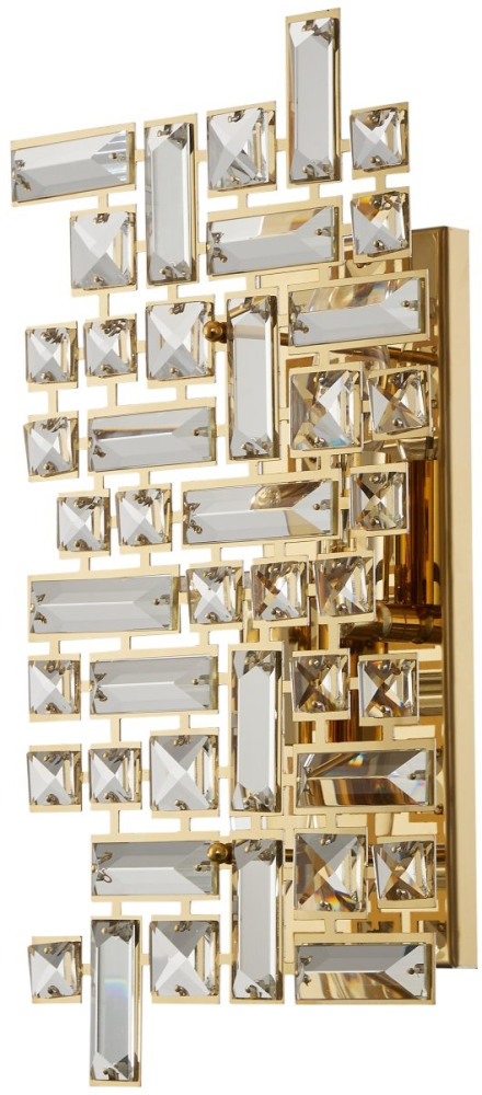 Каркас настенного светильника выполнен из качественного металл, цвет каркаса - золото, цвет плафона - прозрачный, что придает этому светильнику гармоничности.