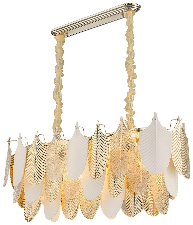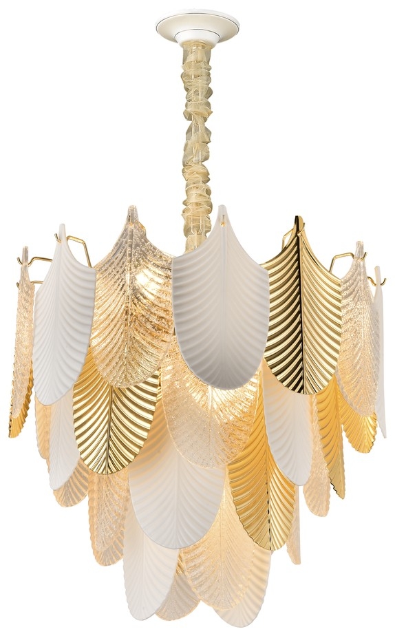 Корпус подвесной люстры реализован из надежного металла, а золотой цвет придаст вашему интерьеру изысканности. Плафон выполнен в белом цвете, что добавляет модели легкости, изысканности и завершенность образа.