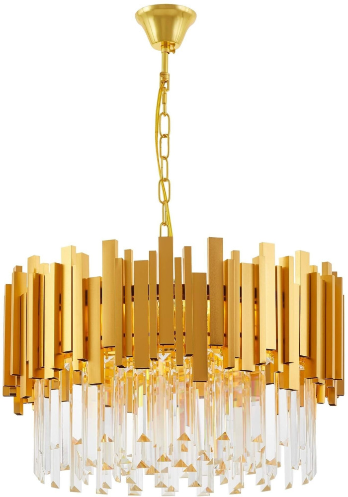 Корпус подвесной люстры реализован из надежного металла, а золотой цвет добавит вашему интерьеру изысканности. Плафон выполнен в прозрачном, золотом цвете, что добавляет модели легкости, изысканности и завершенность образа.