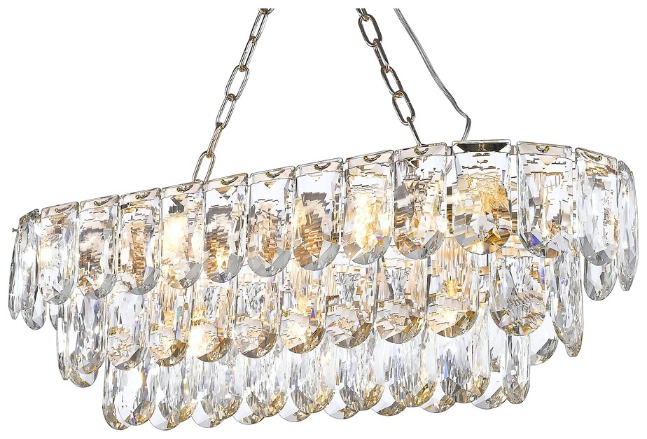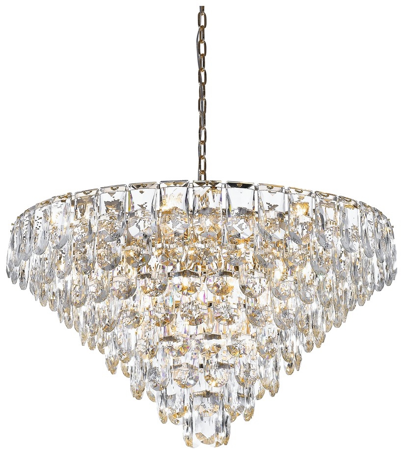 Корпус подвесной люстры создан из высококачественного металла, а золотой цвет придаст вашему интерьеру теплоты. Плафон выполнен в прозрачном цвете, что добавляет модели легкости, благородства и завершенность образа.