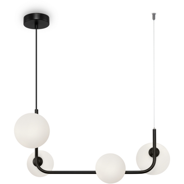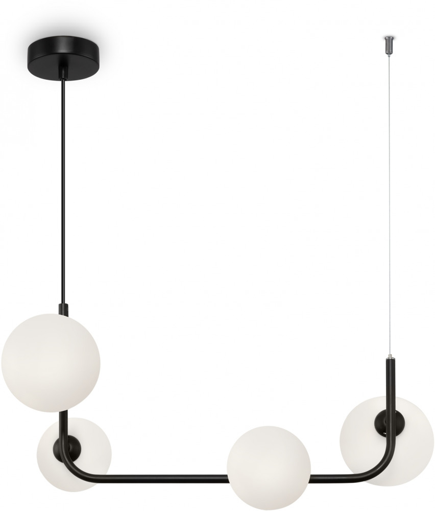 Корпус подвесной люстры сделан из прочного металла, а чёрный цвет добавит вашему интерьеру глубины. Плафон выполнен в белом цвете, что добавляет модели легкости, элегантности и завершенность образа.