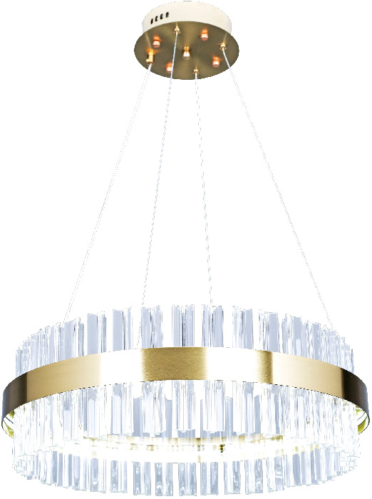 Корпус подвесной люстры создан из прочного металла, а золотой цвет добавит вашему интерьеру изысканности. Плафон выполнен в прозрачном цвете, что добавляет модели легкости, элегантности и завершенность образа.