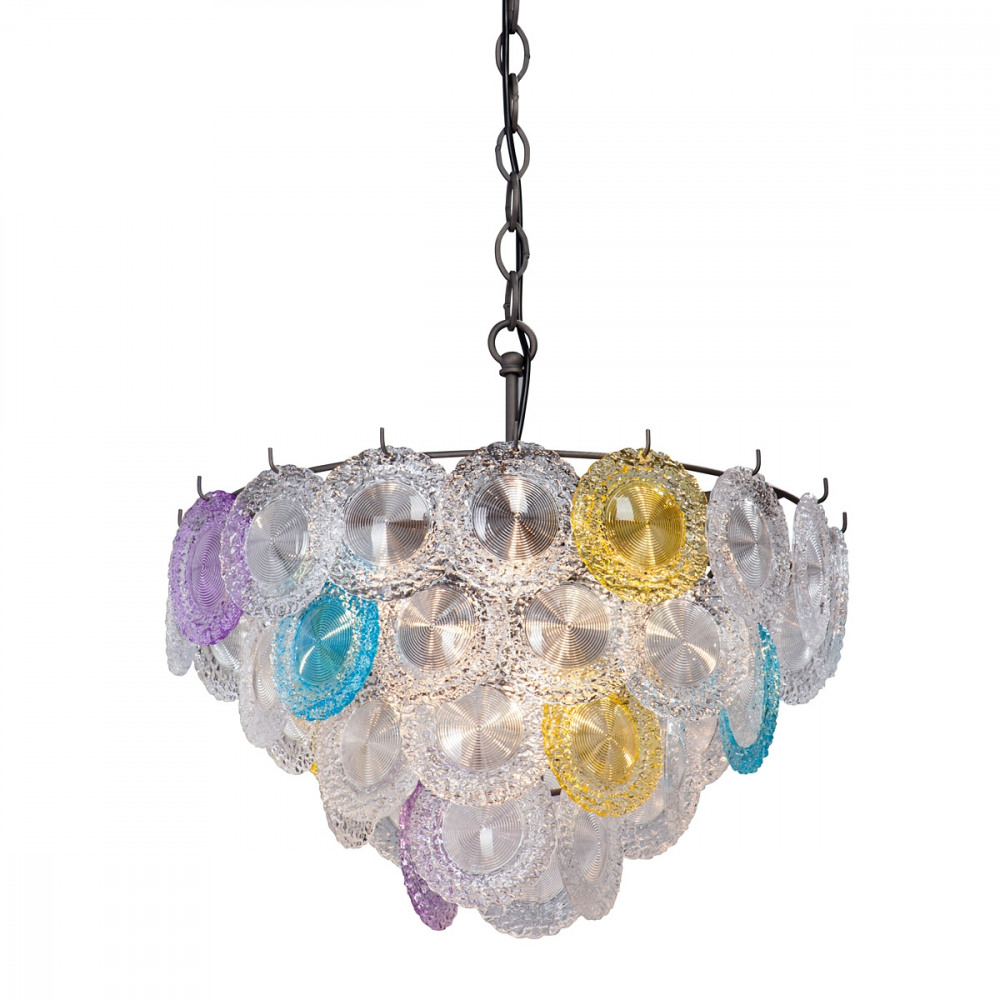 Корпус подвесной люстры исполнен из высококачественного металла, а графитовый цвет добавит вашему интерьеру элегантности. Плафон выполнен в разноцветном цвете, что добавляет модели легкости, элегантности и завершенность образа.