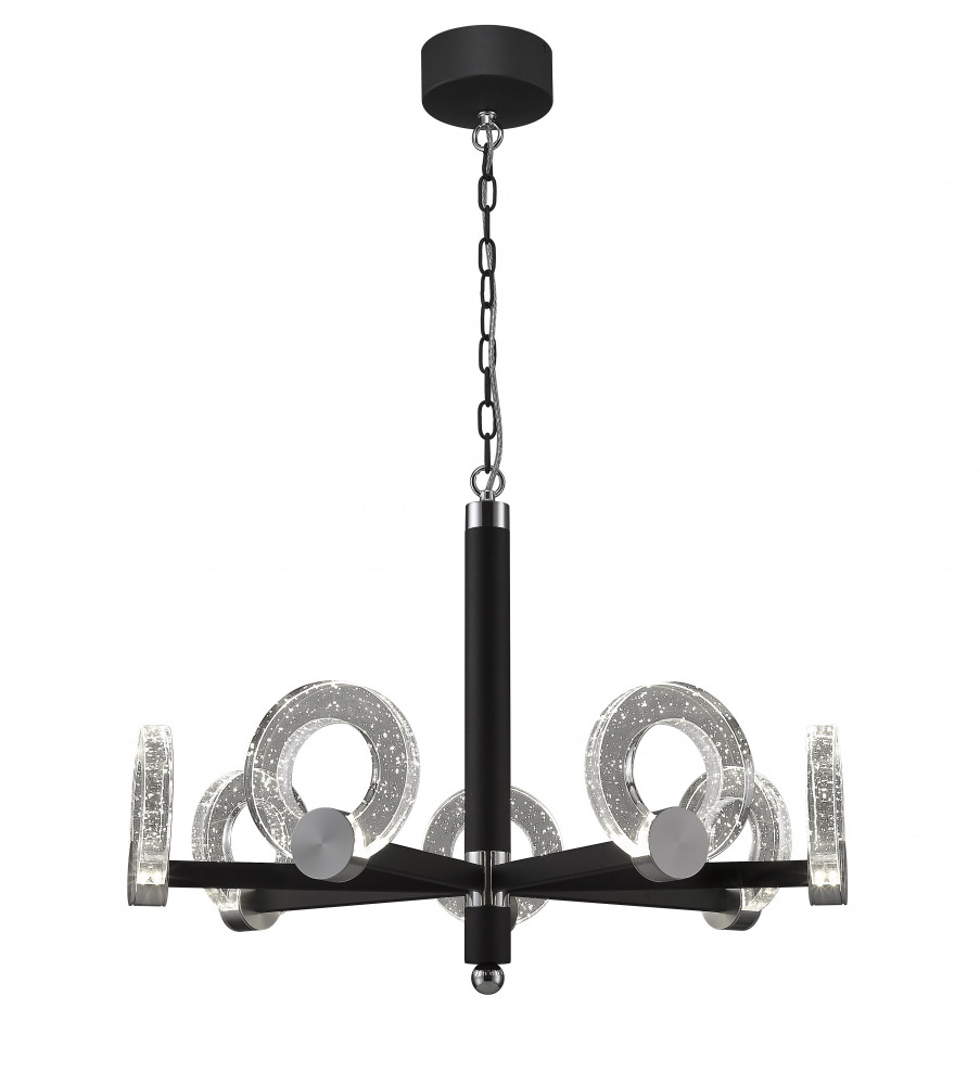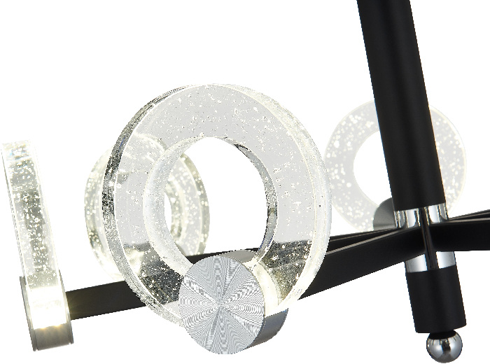 Каркас подвесной люстры реализован из прочного металла, а чёрный цвет придаст вашему интерьеру изысканности. Плафон выполнен в прозрачном цвете, что добавляет модели легкости, благородства и завершенность образа.