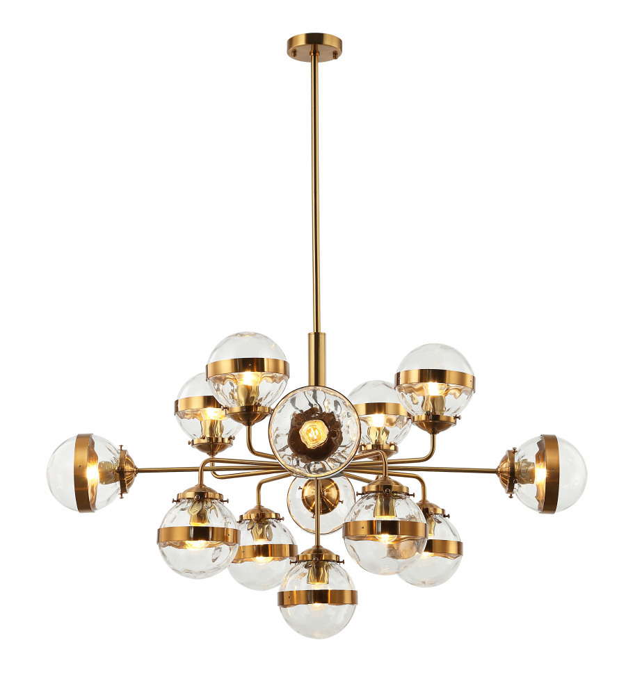 Корпус подвесной люстры выполнен из прочного металла, а золотой цвет придаст вашему интерьеру изысканности. Плафон выполнен в прозрачном цвете, что добавляет модели легкости, элегантности и завершенность образа.