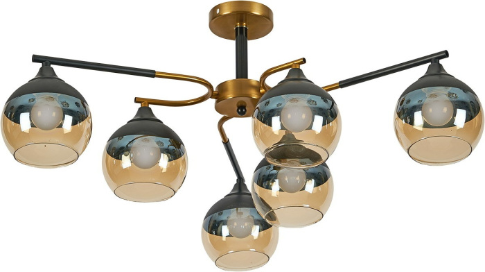 Корпус потолочной люстры выполнен из надежного металла, что добавляет ей прочности и долговечности. Плафон в чёрном, янтарном цвете придаёт модели лёгкости, изысканности и завершенности, благодаря чему люстра станет настоящим украшением вашего интерьера.