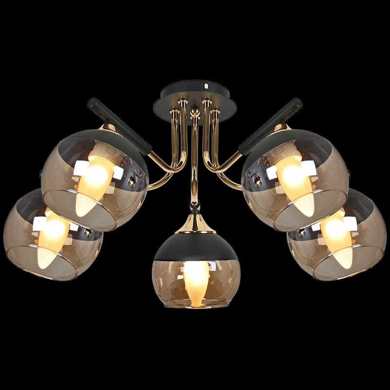 Каркас потолочной люстры реализован из надежного металла, что добавляет ей прочности и долговечности. Плафон в чёрном, янтарном цвете придаёт модели лёгкости, изысканности и завершенности, благодаря чему люстра станет настоящим украшением вашего интерьера.