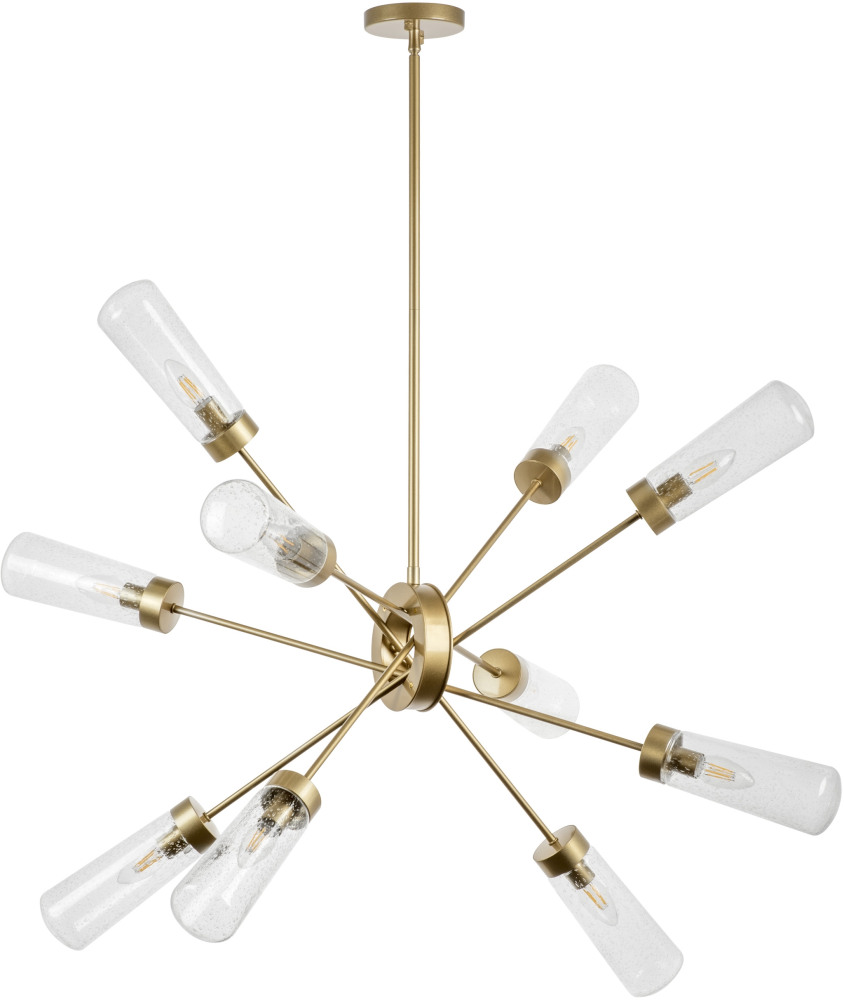 Для создания мягкого освещения в светильнике предусмотрены лампочки в количестве 10 шт. с цоколем E14 и общей мощностью 400 Вт., благодаря чему обеспечивается достаточное освещение для помещений площадью до кв.м.
