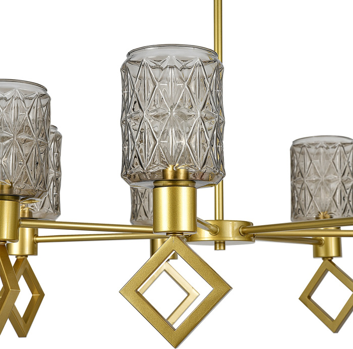 Каркас потолочной люстры изготовлен из прочного , что добавляет ей прочности и долговечности. Плафон в дымчатом цвете придаёт модели лёгкости, изысканности и завершенности, благодаря чему люстра станет настоящим украшением вашего интерьера.