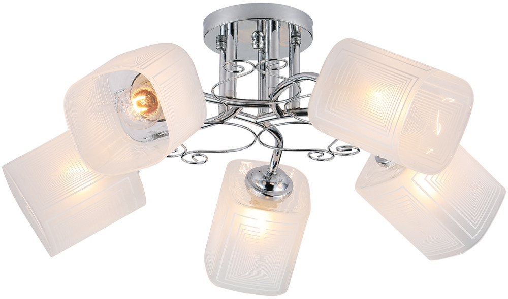 Для создания приятного освещения в светильнике предусмотрены лампочки в количестве 5 шт. с цоколем E27 и общей мощностью 200 Вт., благодаря чему обеспечивается хорошее освещение для помещений площадью до 10 кв.м.