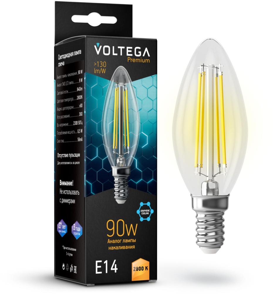Лампочка светодиодная Candle 9W Graphene 7134 Voltega можно вернуть или обменять при условии сохранения комплектации, внешнего вида и целостности упаковки.