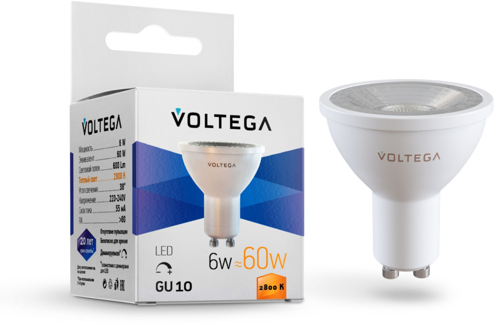 Лампочка светодиодная Sofit dim GU10 Lens 7109 Voltega, а также весь ассортимент товаров, представленный на сайте интернет-магазина ТопСвет.ру обладает фирменной гарантией производителя.
