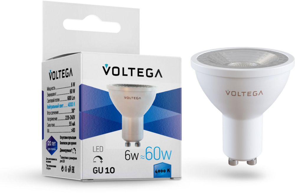 Лампочка светодиодная Sofit dim GU10 Lens 7109 Voltega, а также весь ассортимент товаров, представленный на сайте интернет-магазина ТопСвет.ру обладает фирменной гарантией производителя.
