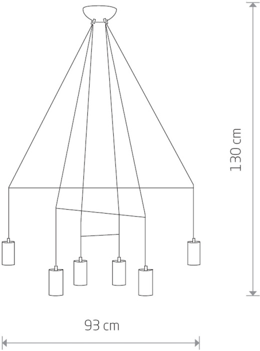 Размеры этого светильника – ширина мм., высота 1300 мм. Он идеально подойдёт для комнаты площадью до 12 квадратных метров. Для создания необходимого освещения здесь использовано 6 ламп с цоколем GU10 и общей мощностью 60 Вт.