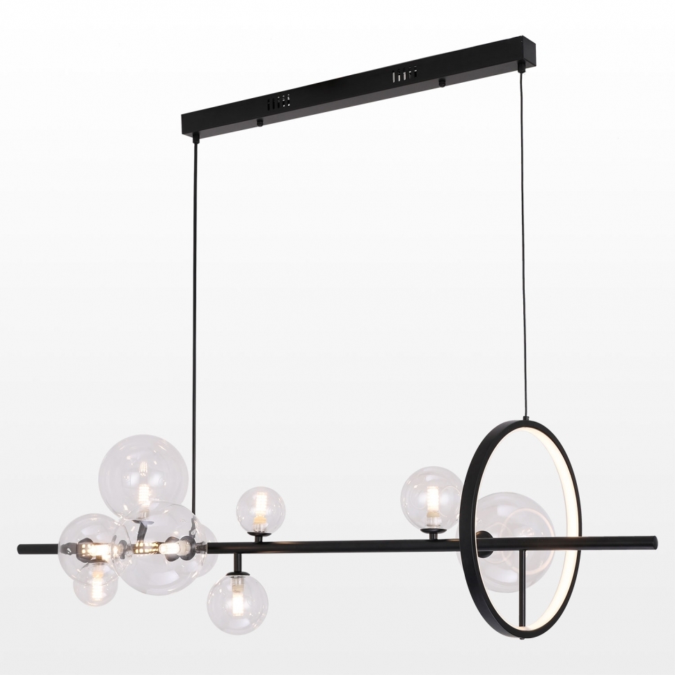 Каркас данной модели создан из качественного металла, а его чёрный цвет придаст вашему интерьеру гармоничности и теплоты. Плафон выполнен в прозрачном цвете, что придает модели легкости и гармоничности.