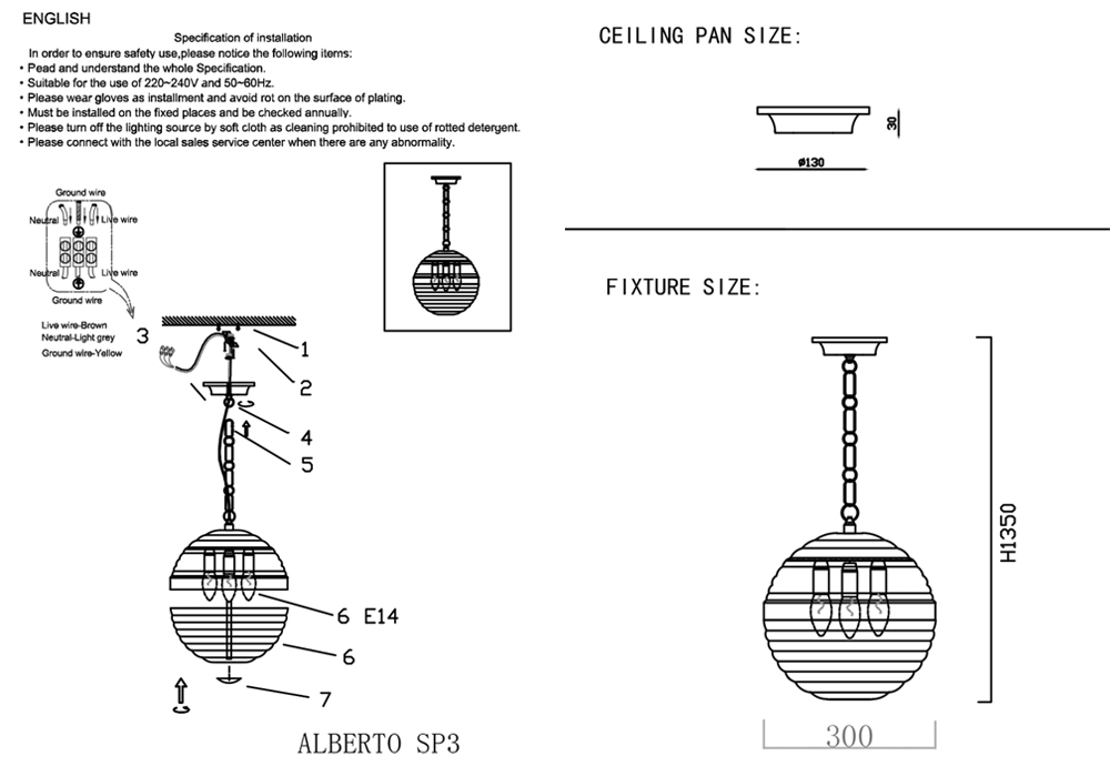Размеры этого светильника – ширина 300 мм., высота 300 мм. Он идеально впишется для комнаты площадью до 12 кв.метров. Для создания приятного освещения здесь использовано 3 ламп с цоколем E14 и общей мощностью 180 Вт.