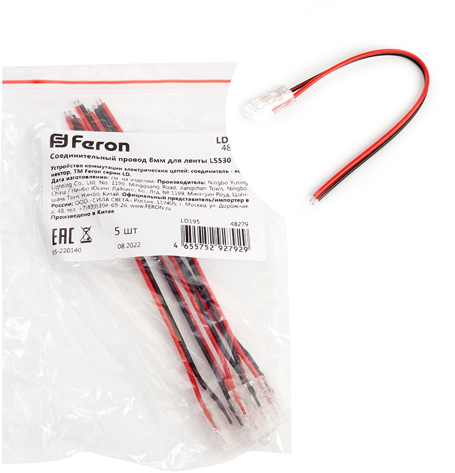 Соединитель 48279 Feron, а также весь ассортимент товаров, представленный на сайте интернет-магазина ТопСвет.ру обладает фирменной гарантией производителя.