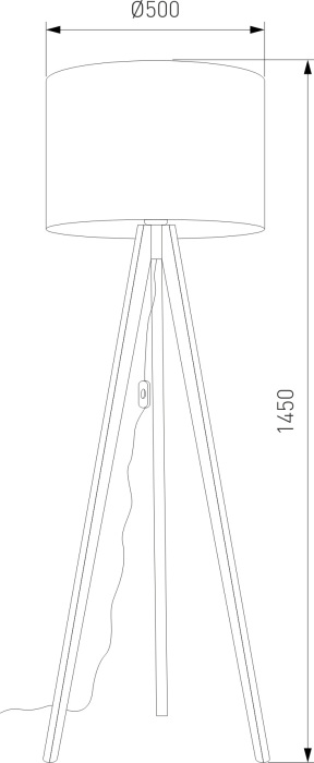 Размеры этого торшера – ширина 500 мм., высота 1450 мм. Он идеально впишется для комнаты площадью до 2 квадратных метров. Для создания необходимого освещения здесь использовано 1 ламп с цоколем E27 и общей мощностью 15 Вт.