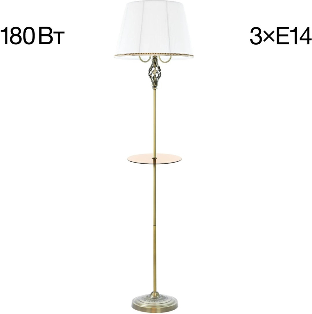 Размеры этого торшера – ширина 420 мм., высота 1640 мм. Он идеально впишется для комнаты площадью до 5 кв.метров. Для создания подходящего освещения здесь использовано 3 ламп с цоколем E14 и общей мощностью 180 Вт.